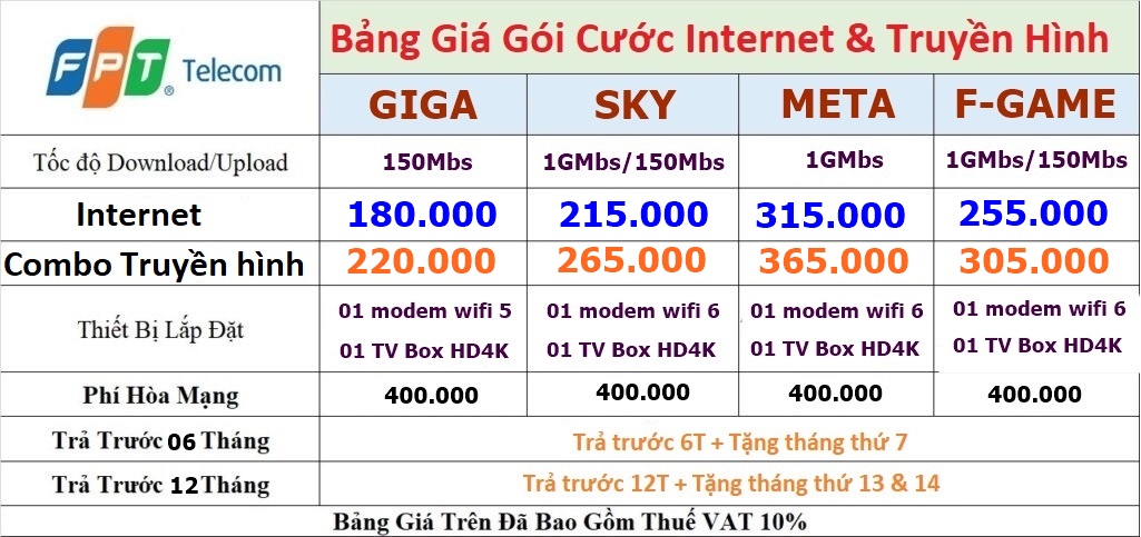 _ Trả trước 12 tháng + miễn phí lắp đặt + Tặng 1 tháng cước.